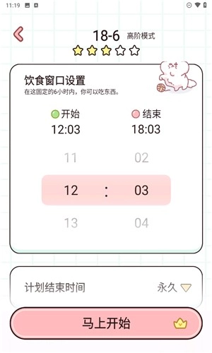 4、用户可在软件中设置专属的固定6小时计划,在该固定时段内,允许进行进食操作。