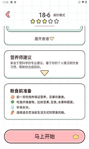 5、软件还贴心地为用户准备了轻断食前的小知识、建议、准备说明等内容。
