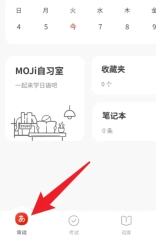 2、进入后,在主界面左下角找到“背词”选项并点击,以进入下一步。