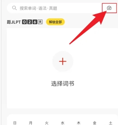 3、在背词页面的右上角,你会看到一个小相机图标,点击这个图标就能启用拍试卷功能。