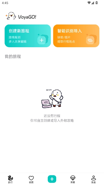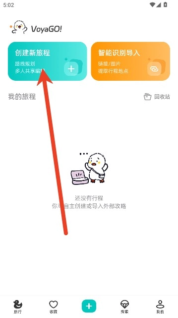1、打开VoyaGO,点击旅行页面里的创建新旅程选项