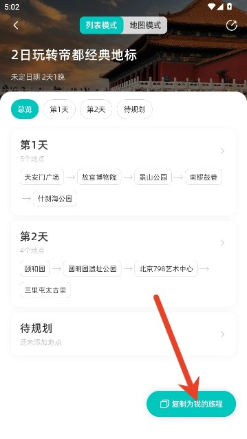 4、点击页面下方的“复制为我的旅程”按钮,用户还能对时间、地点等信息进行编辑。