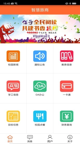 信息整合平台:智慧旅商对校园网站资源进行整合,将OA办公、一卡通查询、图书检索等多种服务集成在一起。