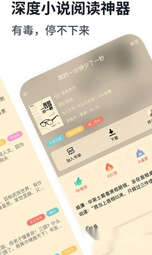 8、独阅读是书迷看小说的必备工具。平台汇聚海量资源,涵盖全本小说、奇幻、西幻、历史、科幻、都市、科幻灵异等多种类型,还有有声小说、动漫小说、同人小说及经典图书等,各类作品一应俱全。更有超质感阅读体验,助你轻松告别书荒!