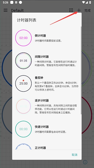 1、添加计时器:点击“+”按钮,在弹出的计时器列表里挑选所需的计时器,确认后就能完成添加。