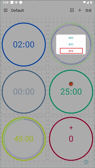 方法一:进入编辑模式后,点击需要删除的计时器,在弹出的窗口里选择删除选项即可。