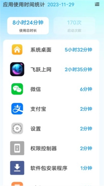 全面数据追踪:飞跃上网从应用启动到使用时长,细致入微的数据记录,帮您洞察时间分配,优化数字生活习惯。