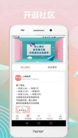 2、根据的社交圈子的素材,查看到推荐的内容;