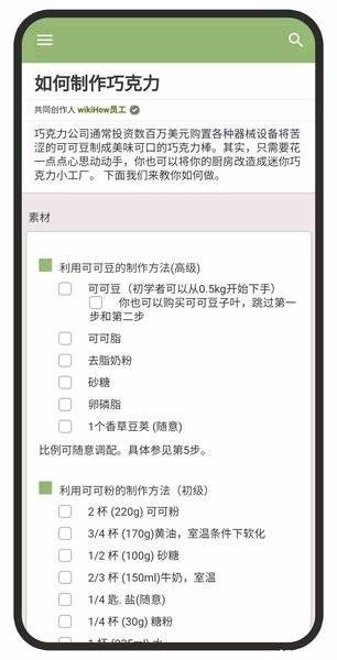 wikiHow是一款能为用户日常生活提供帮助的实用生活百科类软件,它为用户呈现图文结合的教程,涉及生活、健康、技能等诸多领域,助力用户轻松学会各类实用知识,解决生活里的小麻烦。无论是烹饪、急救、维修物品、处理人际关系,还是学习新技能,wikiHow都能一步步指导你完成。wikiHow的内容覆盖面极广,从日常琐事到职场技能,一应俱全,无论什么年龄段的人都能找到适合自己的实用方法,不必再为生活中的小事烦恼。