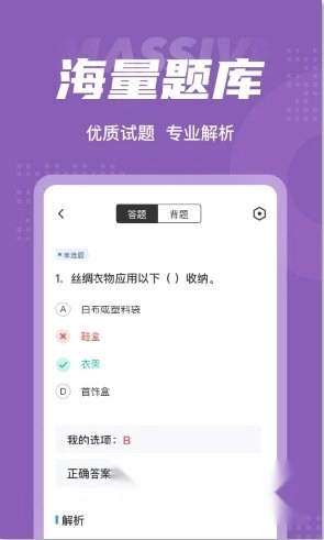 整理收纳师考试聚题库是长沙聚雄网络科技有限公司为备考收纳师证的用户开发的学习工具。平台收录了历年考试真题,用户可随时通过练习强化知识掌握。此外,软件设有错题库功能,会自动记录用户答错的题目,并推送同类题型,助力用户针对性弥补知识短板。欢迎有需要的用户体验使用!