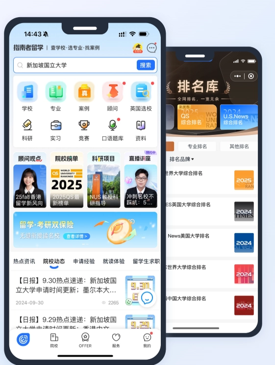 指南者留学是专注于出国留学服务的专业平台,整合了海外院校信息查询、专业排名分析、成功案例参考、背景提升方案及留学资讯推送等功能,已帮助数千名学生拿到斯坦福大学、哥伦比亚大学、新加坡国立大学、帝国理工学院等世界TOP100名校的录取通知书。该平台覆盖美国、英国、加拿大、澳洲、新加坡、香港等热门留学地区,汇聚学长学姐的真实申请经验与实用干货,还提供实习、科研、竞赛等背景提升服务,是留学申请者必备的智能助手。