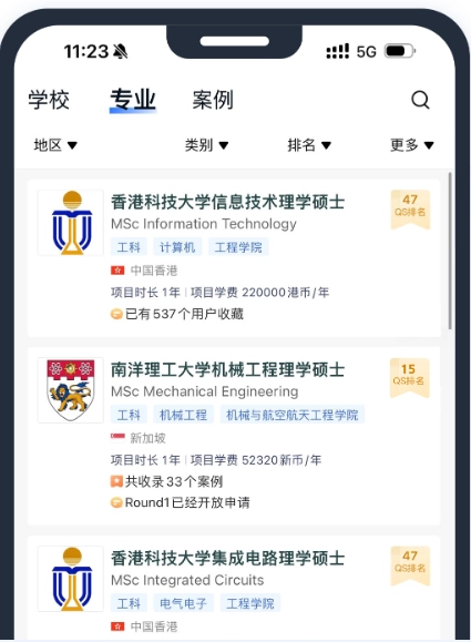 我们全面整合了全球各国高校及其专业的详细信息,支持通过国家、专业、排名等多个维度进行复合筛选,助力你精准找到与自身需求高度匹配的理想院校。