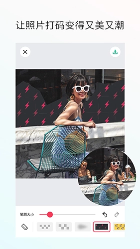 5、返回至马赛克编辑页面后,马上挑选心仪的马赛克样式并进行涂抹遮盖操作