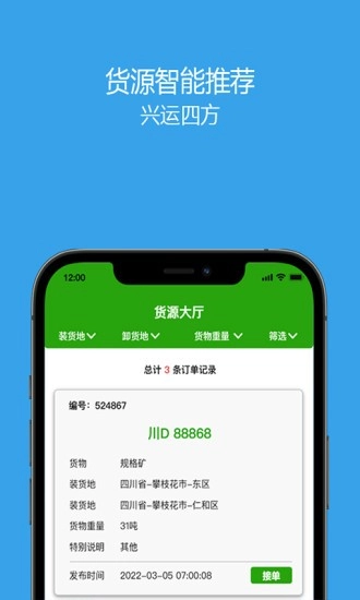3、兴运通司机通过包车货源板块,为各位车主提供了详细的包车货源信息,只要有车就能接单。