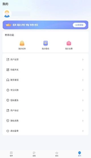 点击底部的“我的”进入个人中心,随时查看保存的小组件、壁纸、主题,还能提交反馈。