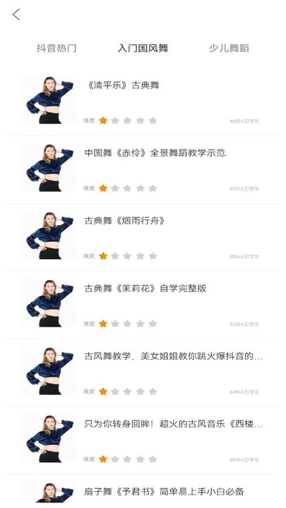 3、根据自身舞蹈基础,选择合适的课程内容,点击进入查看详细的教学视频与讲解。