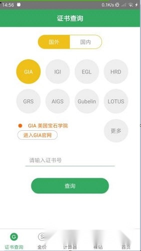 1、在查宝网进行证书查询时,用户可以根据需求自由选择查询国内证书或国外证书,两种查询类型均可随意挑选。