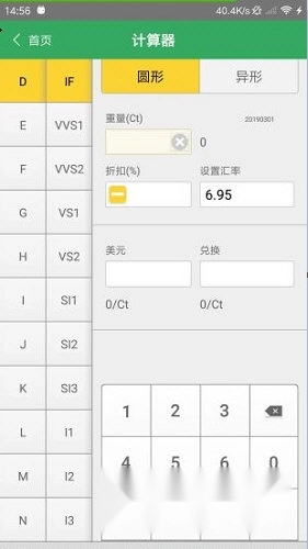 2、选择使用计算器时,可直接挑选圆形或异形珠宝,依据提示填写相关信息就能快速完成计算;