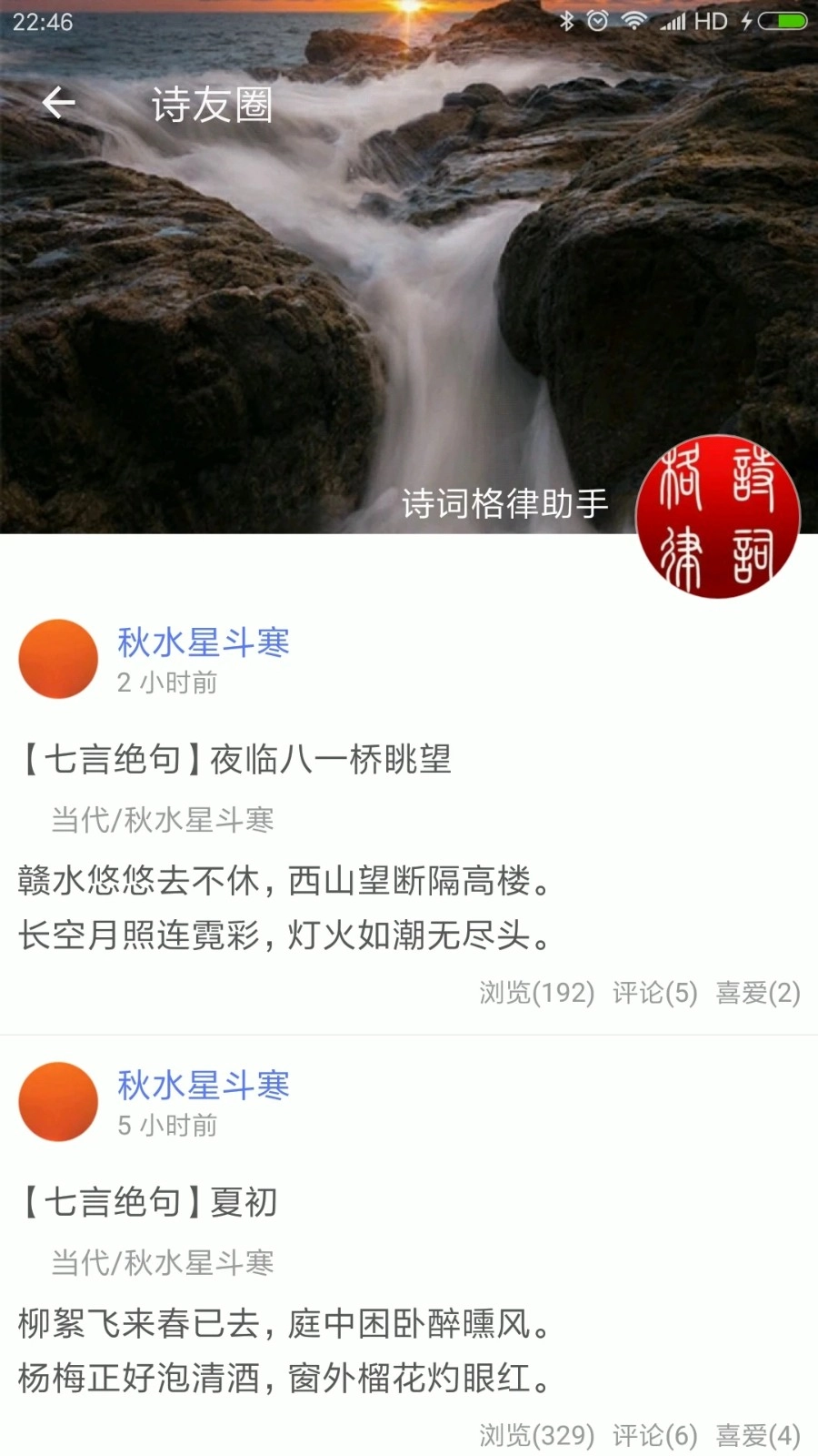 -诗友圈,汇聚与你志同道合的文人雅士,一同品鉴经典古诗词,或是分享交流原创诗词作品。