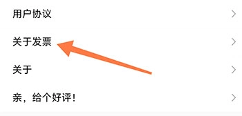 2、在设置页面中,点击关于发票即可;