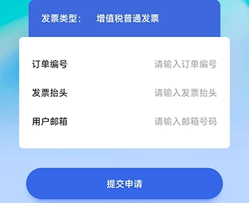 3、填写订单编号、发票抬头与邮箱,点击提交申请就可以了。