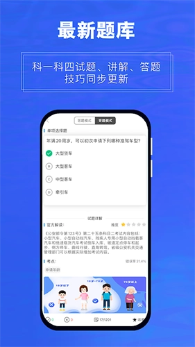 畅达驾考通是一款专业的驾考学习软件,专注于科目一和科目四的针对性训练,助力用户顺利通过理论考试。软件拥有海量题库资源,涵盖全国所有科目一、科目四题目,且与各地交管局实时同步更新,只需设置好驾考所在地即可开始刷题,还有全真模拟考试功能,帮助用户轻松应对理论考试;此外,软件还提供科目二和科目三的视频教程,通过详细的视频教学,帮助用户掌握并巩固相关知识与技巧;用户还能在软件中一键预约练车时间,自主安排练车时段,十分便捷。同时,软件支持多种驾照类型的学习,无论是小车、货车、客车还是摩托车,都能找到对应的学习资料。软件页面简洁实用,操作方便,能帮助用户快速提升驾考能力,欢迎有需要的朋友体验。