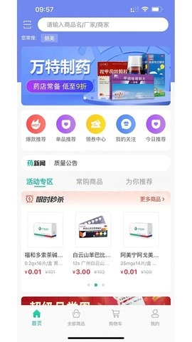 2、爆款推荐:系统会为用户推荐一些热门爆款药品,通过团购的方式购买这些药品,价格会更加划算。
