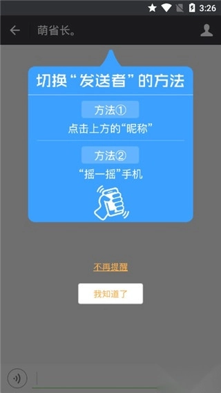 2、点击好友的名字,比如“萌省长”,就能在自己和对方的对话之间切换,开启你的对话生涯吧