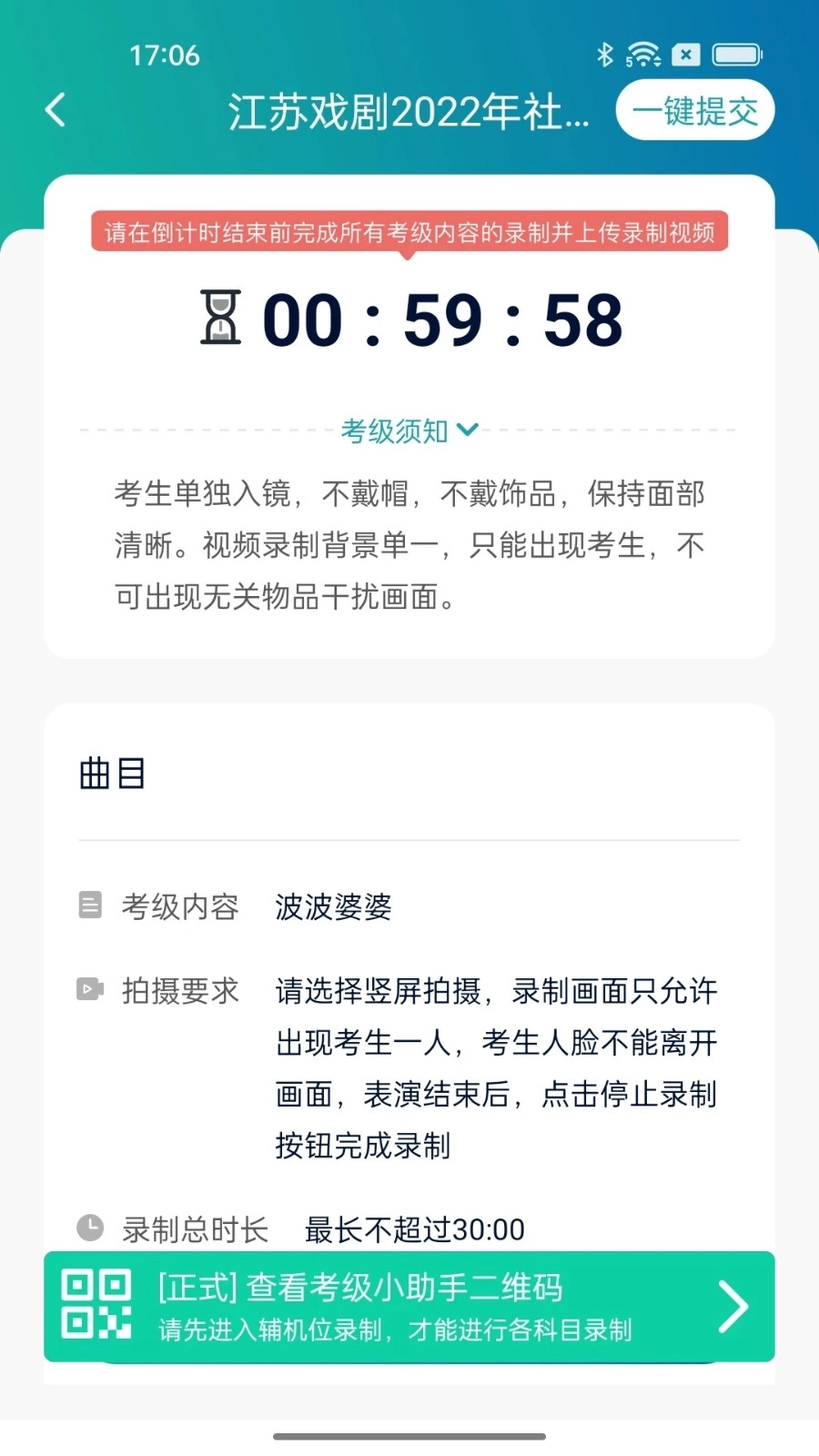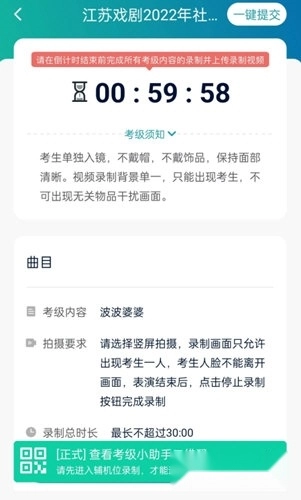【考级模拟】正式考级前的考前练习,不限次数,帮助考生熟练掌握录制流程。