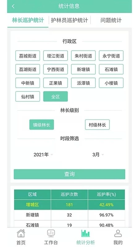 2、数据分析方面,增城林长系统可对所有数据信息进行全自动统计分析,让你能够即时在线掌握数据信息的详细内容。