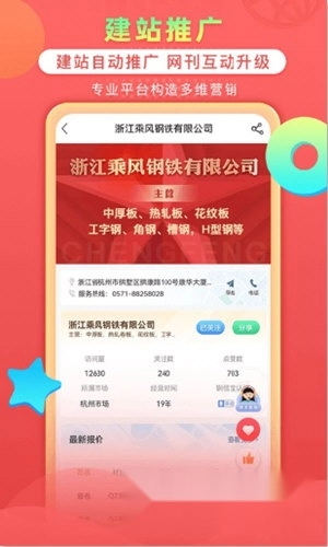 提升宣传效率:丰富的商户推广模式,新颖有趣且效果更优。软件红包活动推广、品牌企业展示等多种推广功能,助力钢贸商通过各类活动推广企业,其中优先、热点、置顶的红包推广方式,能实现所见即所得,效果直观可见。