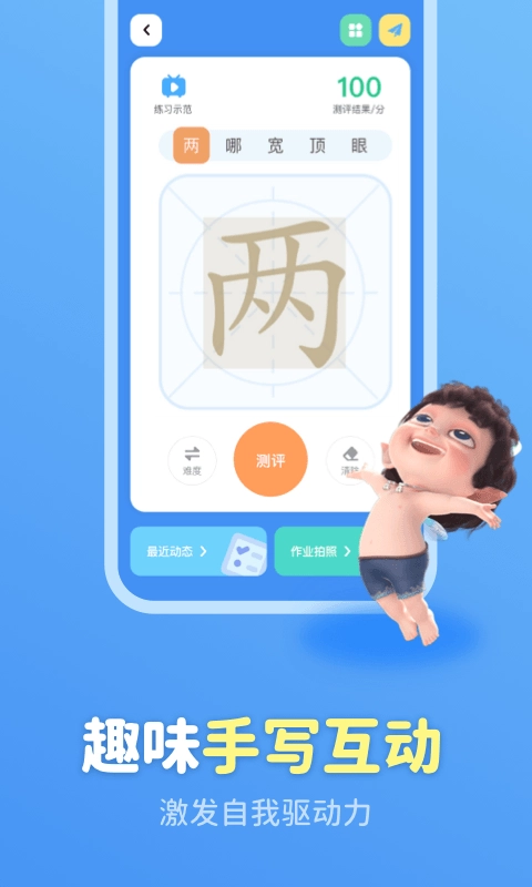 这款软件的教学视频设计新颖,学生能在轻松的互动体验中掌握丰富的练字技巧。软件还设有交流社区,学生可上传自己的练字作品,与其他同学分享心得、共同探讨,让练字学习变得更具趣味性。