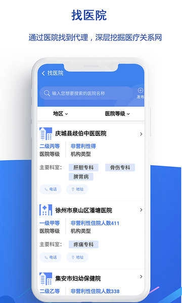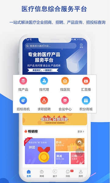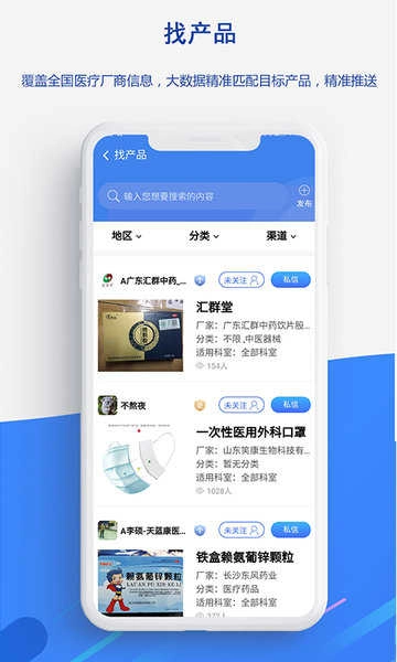 助力医疗从业者发布产品、开展招商招聘与求购求职,支持实时沟通,助力拓展专属人脉资源。