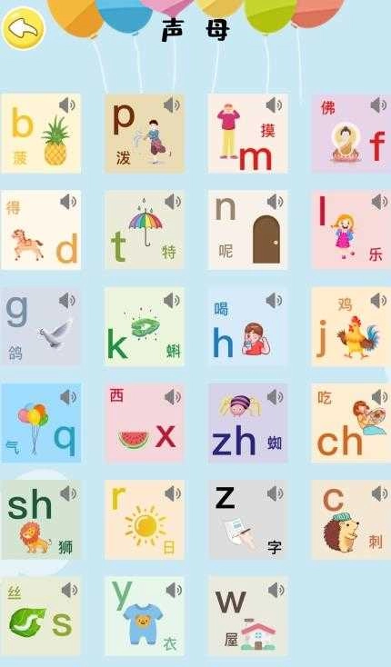 2.提供371组声母与韵母的拼读组合,支持分类查找和系统学习。