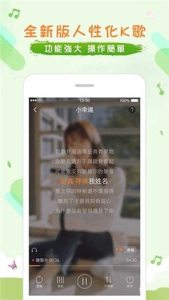 4、完美音质带来更动听的听觉享受,一键修音功能让声线更趋完美,强大的智能混音技术,助力你的歌声更加悦耳动人