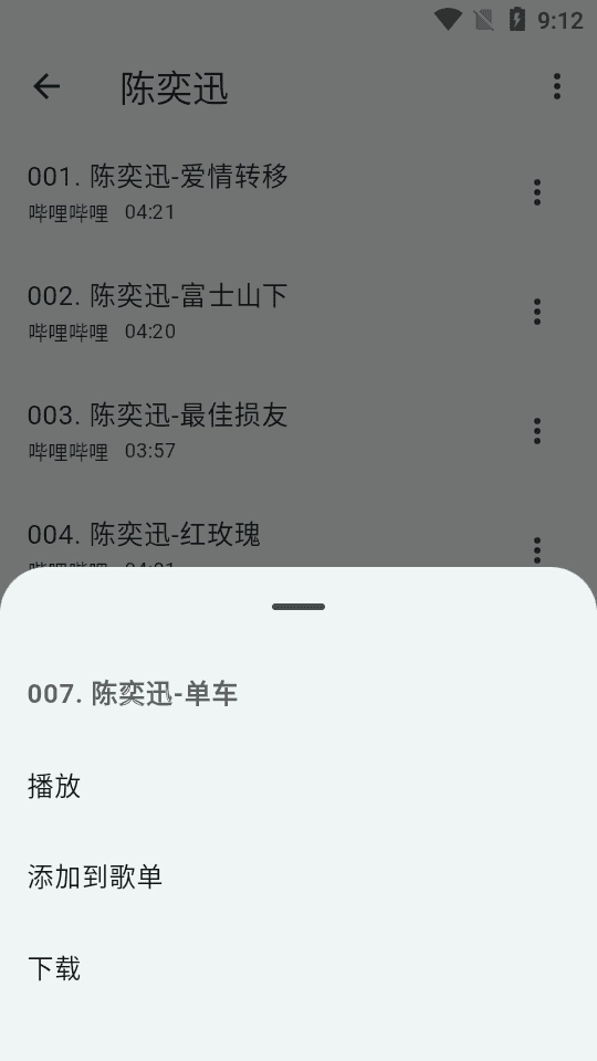 3.哔哔音乐播放音乐时,可以一键播放所有歌曲。