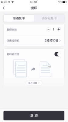 3、支持身份证复印功能,复印时提供普通复印与身份证复印两种模式选择。