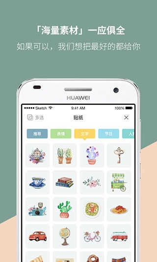 1.拥有海量精美模板与素材,可满足不同场景下的记录需求。