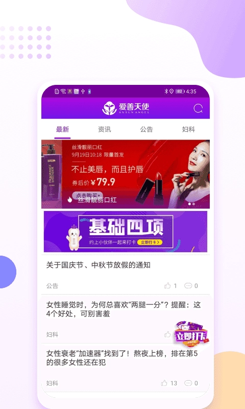 爱善天使是一款整合了健康咨询、生理期管理、健康数据跟踪等多种功能的女性健康应用。它的核心功能涵盖记录生理期、基础体温、体重等健康信息,给出定制化的健康指导,还能让用户与专业医生进行在线咨询。借助这些功能,用户能够更全面地掌握自身身体状况,及时察觉潜在的健康隐患,进而更有效地维持身体健康。