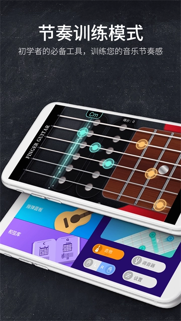 在沉浸于美妙音乐的同时,你还可以借助吉他模拟器来记忆和弦,跟随节拍练习,熟悉拨片的使用,从而增强自身的节奏感。
