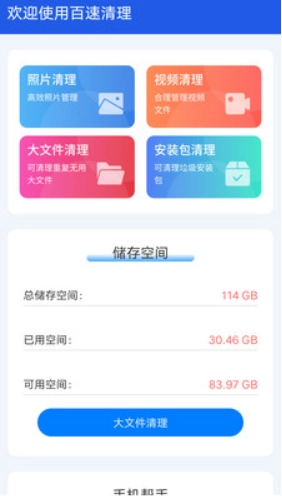 3、一键清理:这款软件具备一键清理的功能,能够迅速扫描并清理设备里的垃圾文件、缓存文件以及各类无用数据,从而节省存储空间。清理掉这些无用文件后,用户可以释放出更多的存储空间,让设备运行得更为流畅。