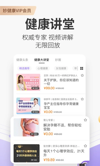 妙健康作为一款健康软件,借助AI人工智能算法分析用户的健康行为,为其量身定制合理的健康计划,并科学地推荐改善目标与周期,帮助用户有针对性地解决健康问题,从而收获健康益处。此外,该软件还向用户提供寻医问诊、体检、自测用药、在线购药以及定制化保险等服务,是一个集健康管理、医疗、药品和保险于一体的综合健康应用平台。