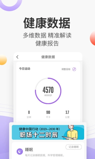 【健康数据】支持市面上300多款健康设备绑定,智能手环、血压计、血糖仪、体脂秤、体温计等设备可一键关联,全身健康数据能轻松记录。