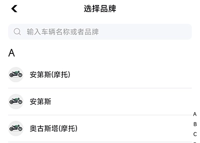 3、选择自己爱车的品牌和车型即可添加。