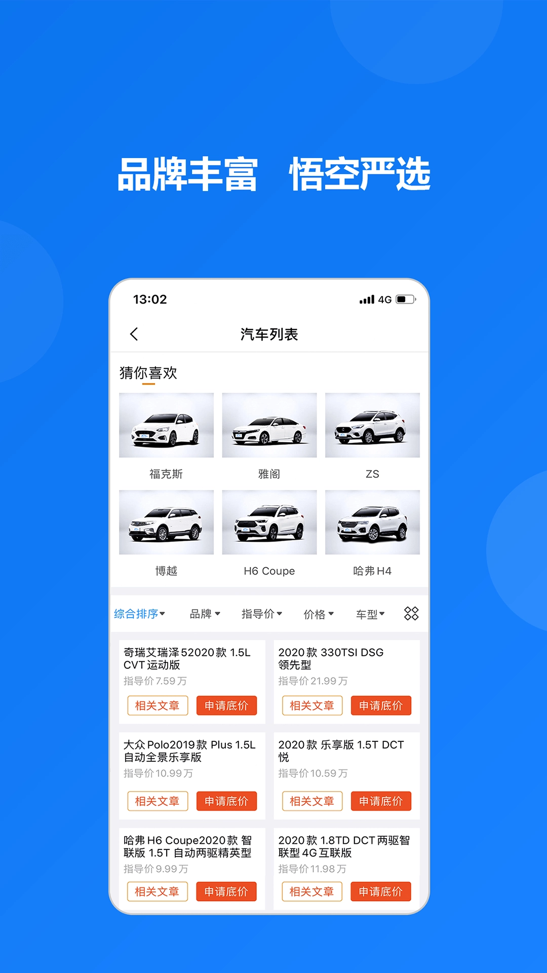 悟空淘车是一款专注于汽车资讯的看车选车平台,汇聚众多品牌,提供质量保障,是千万用户信赖的汽车服务平台。