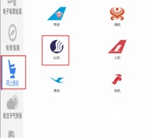 2、切换至左侧的“网上值机”功能界面,挑选您即将搭乘的航班。