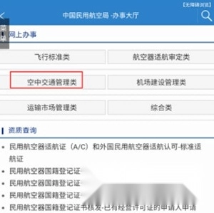 4、依据自身需求选择想要查询的职业技能类别,这里以“空中交通管理类”为例。