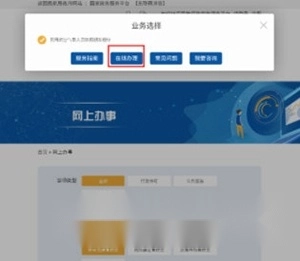 5、接下来需要选择事项类型、服务对象等信息,随后在线办理并查询相关内容。