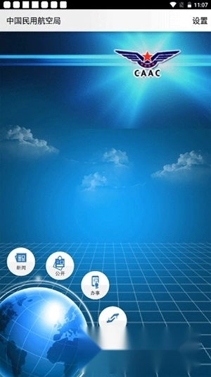 1、依旧在中国民航局网站的主界面上,点击右上角的“设置”按钮。