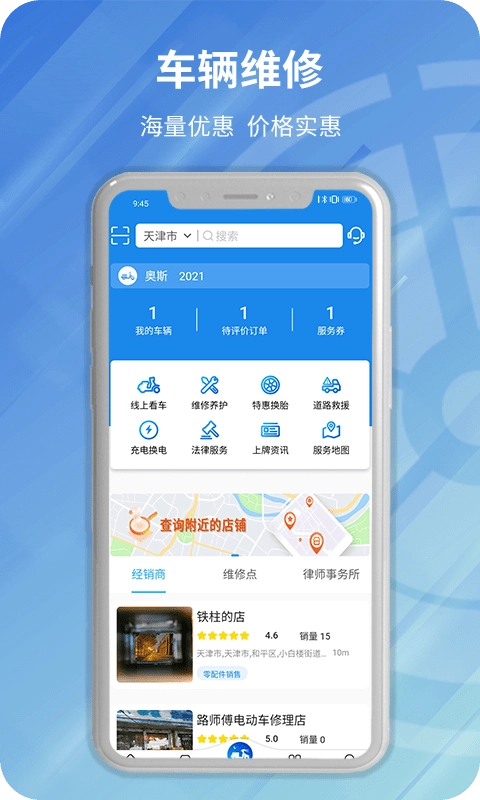 【车辆维修服务】安程宝车主能借助店铺列表,查找周边的电动自行车维修站点以及所需维修零部件的价格,享受便捷的快速维修服务。